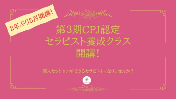コンシャスケア講座0〜2期ご受講のあなたへ 第3期セラピスト養成クラス2023年5月スタート! 再受講特別価格でのお申し込みはこちら あなたは、セラピストとして毎日を過ごしてみたいと思いませんか?コンシャスオンラインサロンで活躍する、認定セラピストさんたちの ように、リーディングやヒーリングを習得し、個人セッションをしたり、光 のメッセージをプレゼントできるようになりたい、という方もいらっしゃる とお聞きしています。その鍵は、「癒し」と「変容」そして「直感」。自分とつながり、自分を癒す。すると自然に「変容」していく。 直感とつながり、リーディングやヒーリングを習得して個人セッションがで きるようになる。 それは、子育てにそのまま役に立つことばかり。自分の感情をケアすること は、子どもと向き合うときに絶対必要なスキルですし、「今の子どもに何が 必要か?」をキャッチするのは、実は思考ではなく、直感や感覚です。 そんな、子育てでも必要な「感性感覚を高める」のに最適なのが、2年ぶり にこの春5月から開講する「第3期セラピスト養成クラス」。 自分のケアの仕方をしっかり習得したい、直感を使うことで人生をもう一段 上げていきたい、現実と結びついた癒し。浮ついたスピリチュアルではな く、現実に使えるスピリチュアルを学びたいという方にぴったりなのが、 CPJの「セラピスト養成クラス」。 第1部に、すでに受講してくださっている、「コンシャスケア講座」、第2部として、リーディング&ヒーリングを習得し、個人セッションができる ようになる「本クラス」、という構成になっています。 「コンシャスフル®︎心理学」講座がスタート後、「セラピスト養成クラス」は、下記の図のように、ベーシック講座とアドバンス講座が必須受講となりました。が、すでに長く「コンシャス」に触れてくださっている皆様には、そのまま「セラピスト養成クラス」をご受講頂けます。 自分をケアしながら「ほんとうの自分」でJOYFUL(魂が嬉しく楽しく)に 生きる姿は、家族にとっても、あなたの周囲の人たちにとっても、ほっと癒 され「本来の自分」に戻れる、励まされる存在になることでしょう。 CPJの「セラピスト養成クラス」の⑩の特徴 ~お仕事として~ ①プロとして活動できるカリキュラム構成約3ヶ月+約6ヶ月で個人セッションができるカリキュラム構成となってい ます。スキルだけでなく、セラピストとしての心構えを時間をかけてしっか り学んでいきます。 ②少人数のため、それぞれの方の様子や状態に合わせてたかもりがサポー ト。一方的なレクチャーではなく、受講生主体で講座が進められていく上、24 時間質問できるグループページやフォロークラスでのフォローも充実。よく ありがちな「できないまま終わる」ということがありません。セラピスト養 成クラス受講生全員がリーディング&ヒーリングができるようになって修了 していきます。 ③個人セッションができるようなサポート体制があるから安心。通常、教わって終わりのところが多い中、サポート体制が充実。養成クラ ス修了後も、希望者は、トレーニングクラスに参加することで、リーディン グ力アップ、感情的成長、happymoneyを循環していくためのあれこれを学ん でいける体制があります。*コンシャスケア講座を修了した方限定のCGCというグループコミュニティ では、「光のメッセージ」をグループのみんなに手渡したり、セッションの 相互練習もできます。また、ご存知のように、CPJと認定セラピストさんで運営している、200名 以上がいる無料の「コンシャスオンラインサロン」にて、安心安全な空間で の「お茶会」開催など無料のイベント開催もでき、自分が公で活動していく ための足掛かりとしての「練習の場」も用意されている、という大変恵まれ た環境が整っているため、初めての方も安心です。 ④仲間の存在③のような活動を一緒に開催したり、お互い参加や応援し合ったりする仲 間ができます。時には、お茶やランチだけでなく、仲間で日帰り旅行や一泊 旅行に出かけることも。また自分をよく知る仲間に、自分らしいHPや名刺制 作、アクセサリーをお願いしたり、セッションをお願いしたり、、そんな横 のつながりの楽しさも味わえるのが、CPJコミュニティの特徴です。 ⑤自分らしく活動できるCPJのビジョンは「人(家族)とつながり、自分らしく楽しく生きる世界 を創ること」。それぞれのやりたいこと、好きなこと、才能を活かすこと、 魂が喜ぶことを最も大切に、セラピスト活動を応援しています。 ~自分自身について~ ⑥リアルな体感体験ができる。オンラインであったとしても、たかもりの創り出す空間、エネルギーで癒 しが起きた感覚を持った方は多いと思います。このエネルギー、感覚に触れ る、リアリティある体感体験があなたの毎日や人生に「変容」をもたらして いきます。特に「至福」の体感体験は、言葉にならない感覚、エネルギーと 
